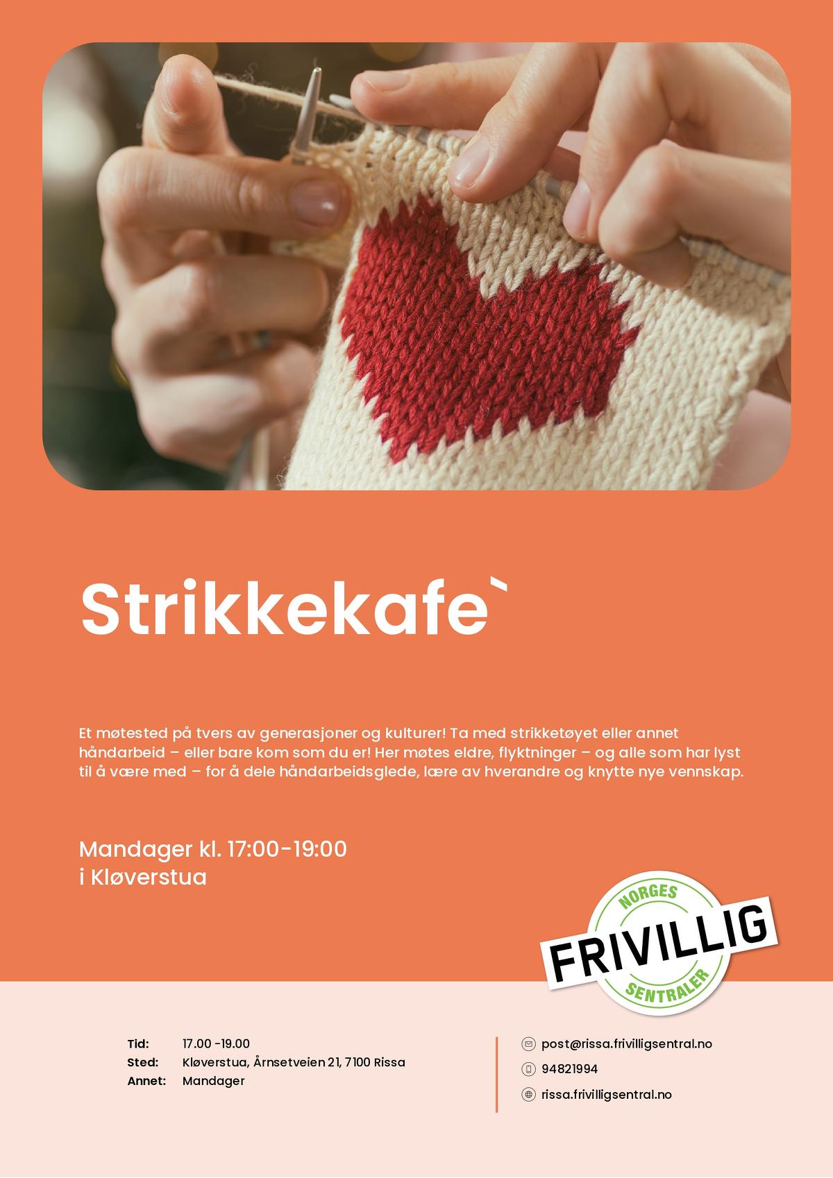 Et møtested på tvers av generasjoner og kulturer! Ta med strikketøyet eller annet håndarbeid – eller bare kom som du er!Et møtested på tvers av generasjoner og kulturer! Ta med strikketøyet eller annet håndarbeid – eller bare kom som du er! Her møtes eldre, flyktninger – og alle som har lyst til å være med – for å dele håndarbeidsglede, lære av hverandre og knytte nye vennskap.
